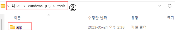 5. build가 완료되면 해당 폴더에 app 폴더가 형성되며 1번 경로에 있는 폴더를 2번 경로로 이동