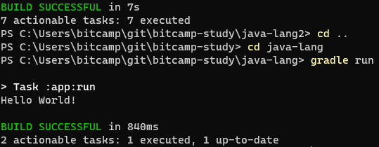mainclass = "bitcamp.App" ← run task 에서 실행 할 클래스를 지정