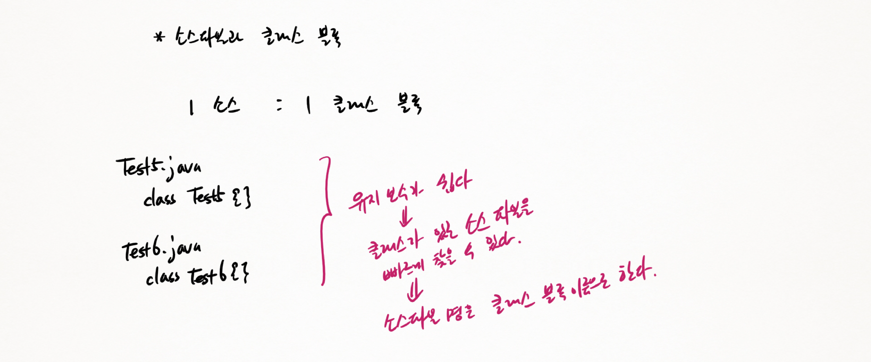 → 유지보수를 쉽게하기 위함. (클래스가 있는 소스파일을 빠르게 찾을 수 있다.)