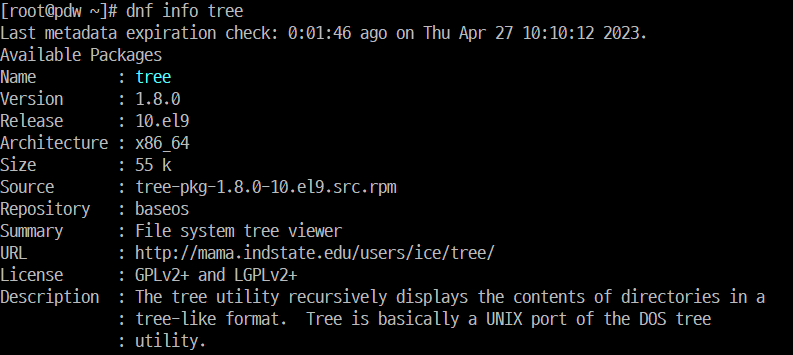 | dnf info tree | tree 패키지 정보 출력 |