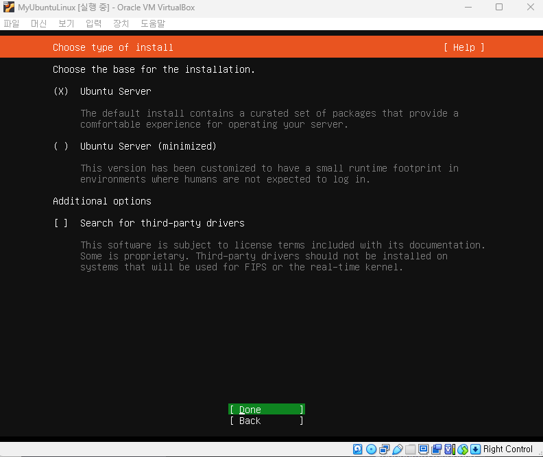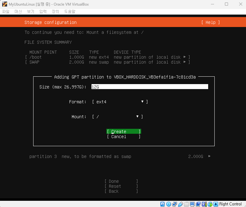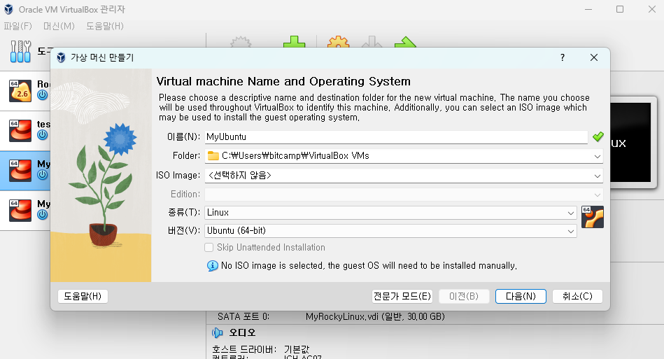 ▶ ubuntu linux 설치. 아래 환경설정과 사진 순서에 따라 진행할 것.