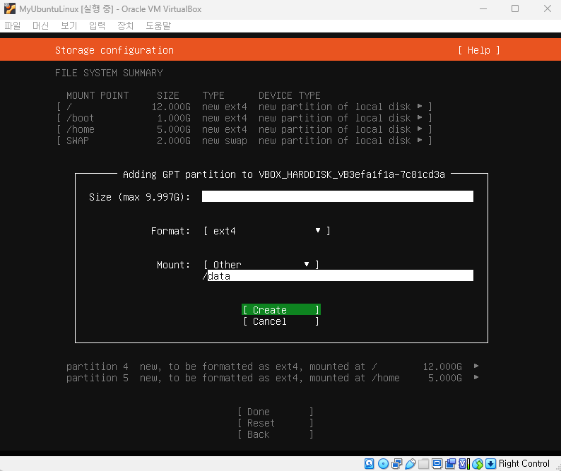 ● G /data 나머지 (10G)