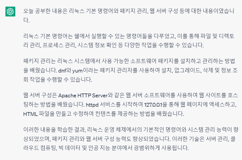 | dnf install httpd | httpd 웹서버 설치 |