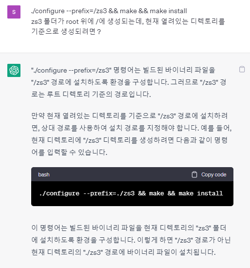 - 설치 경로 설정 후 설치: ./configure --prefix=/zs3 && make && make install