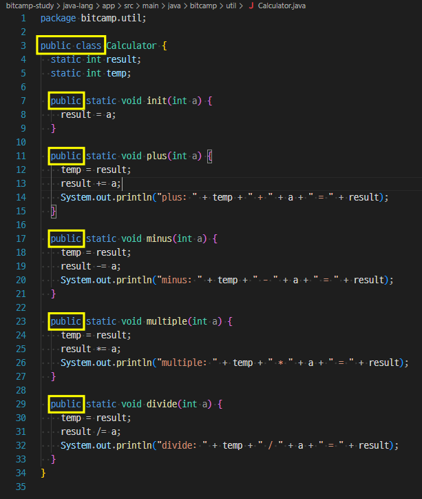 'Public' static 지정을 통해서 다른 패키지에서도 method 에 접근할 수 있게한다.