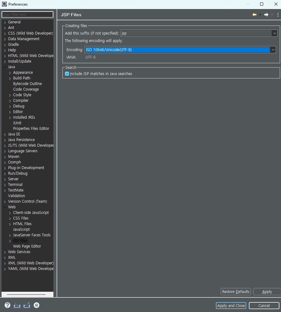 - JSP Files : Encoding을 UTF-8로 설정한다.