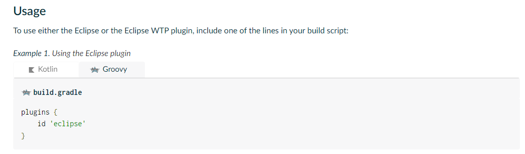 Gradle로 Eclipse project, Eclipse Classpath 등을 실행하기 위해서는 plugin 설치가 필요하다.