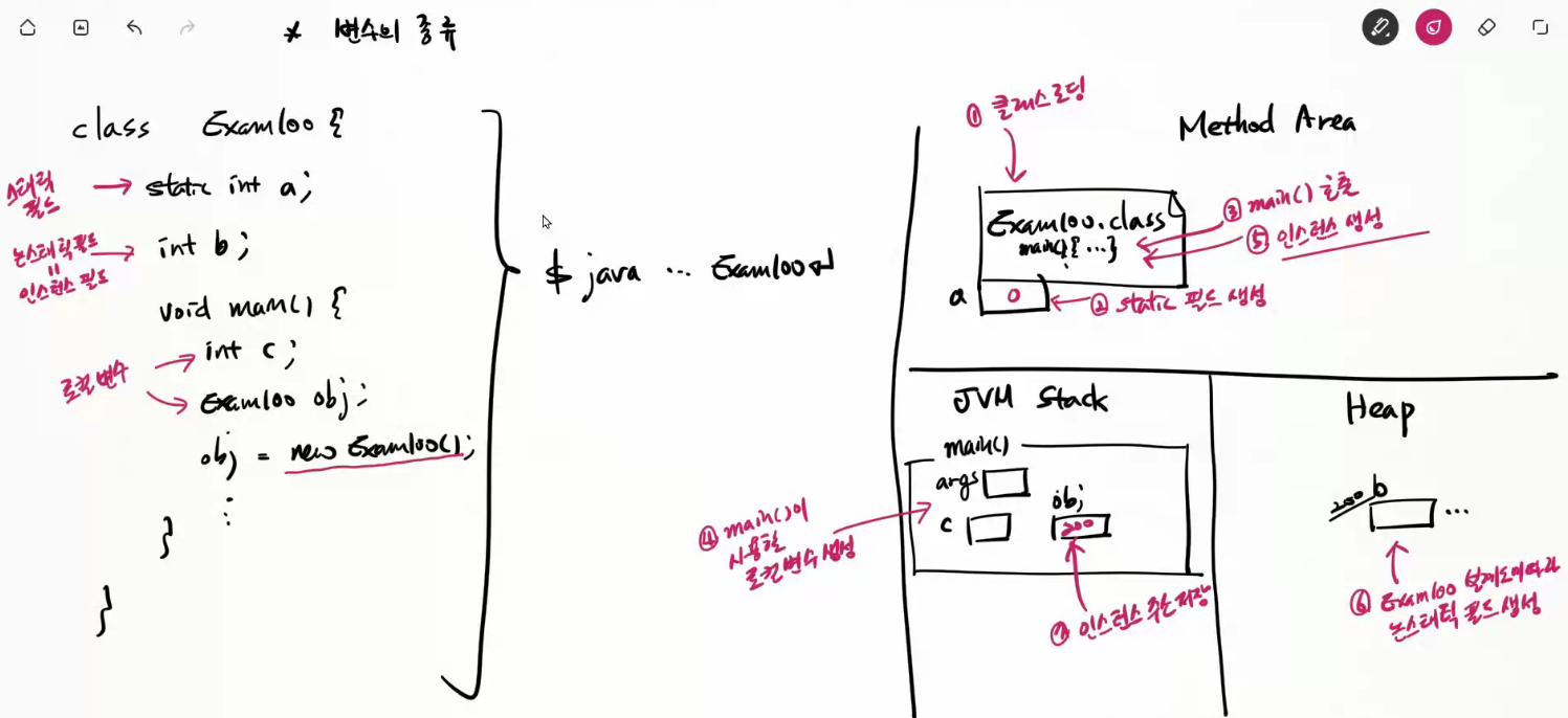 클래스 안에 포함된 스태틱 필드, 논스태틱 필드 (인스턴스 필드) 가 있고 그 아래에