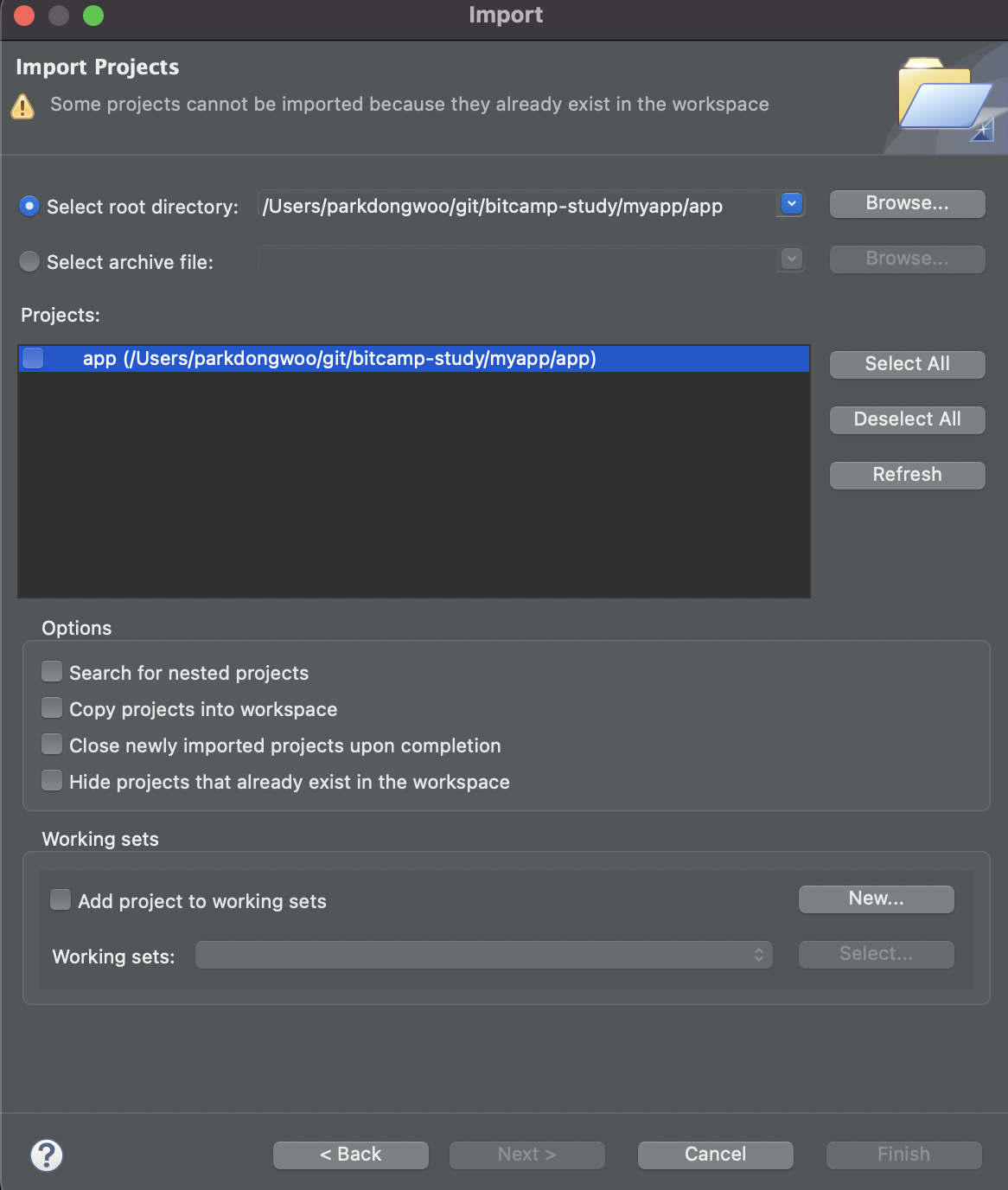 파일 시스템에서 프로젝트 폴더 자체를 가져오는 방법은 패스 설정이 되지 않아도