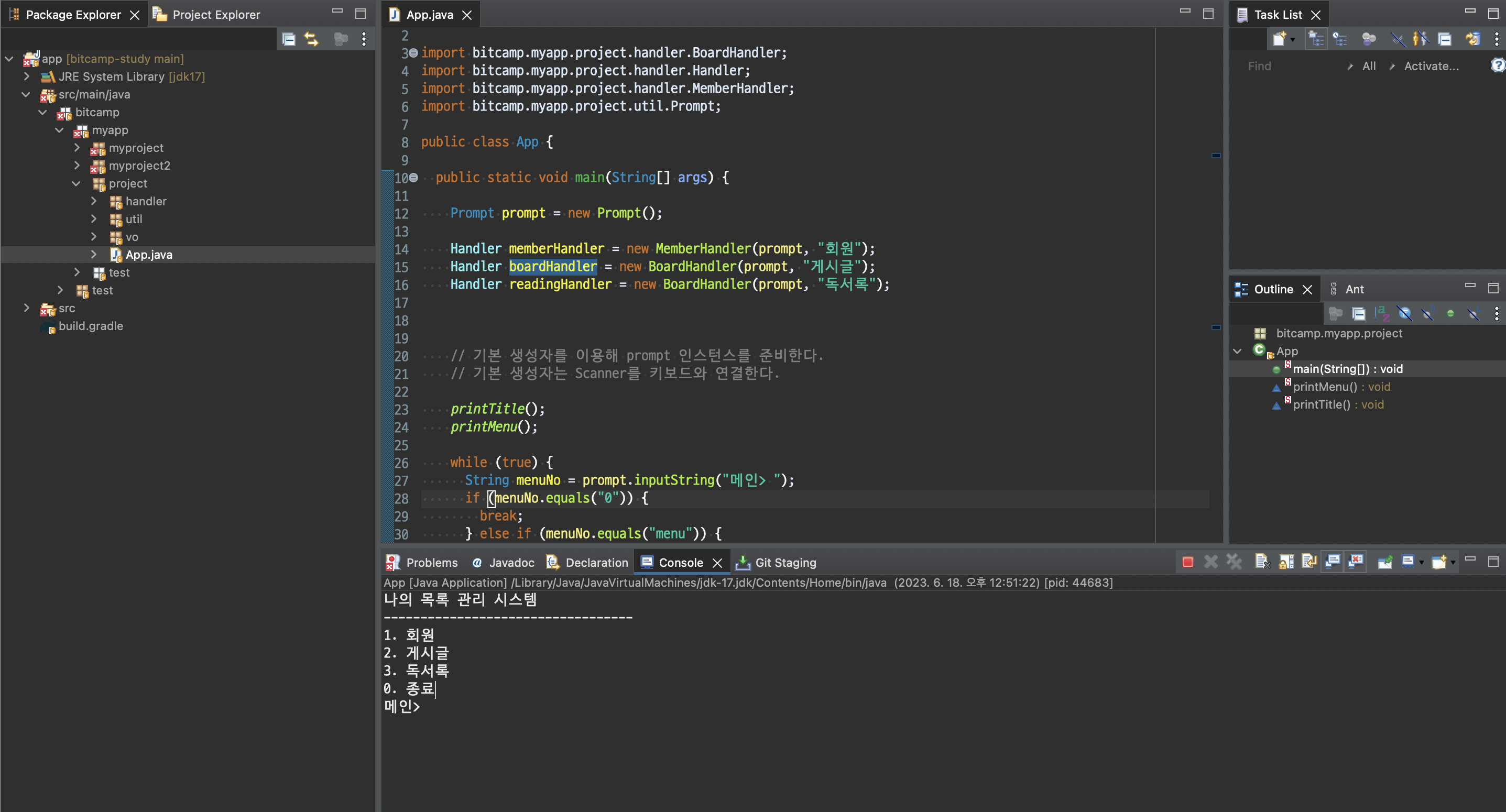 학원에서 windows 환경으로 eclipse 를 설치하고 개발환경을 설정했다.