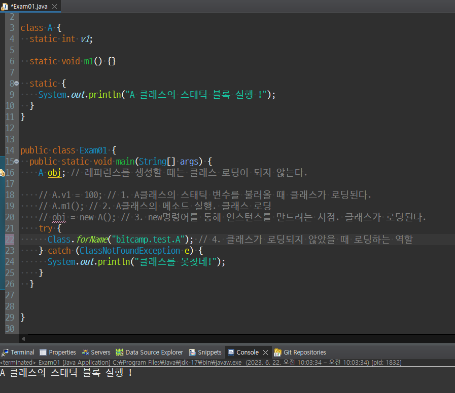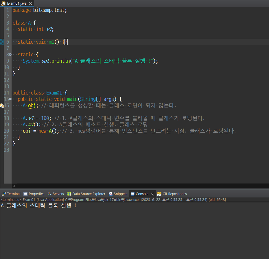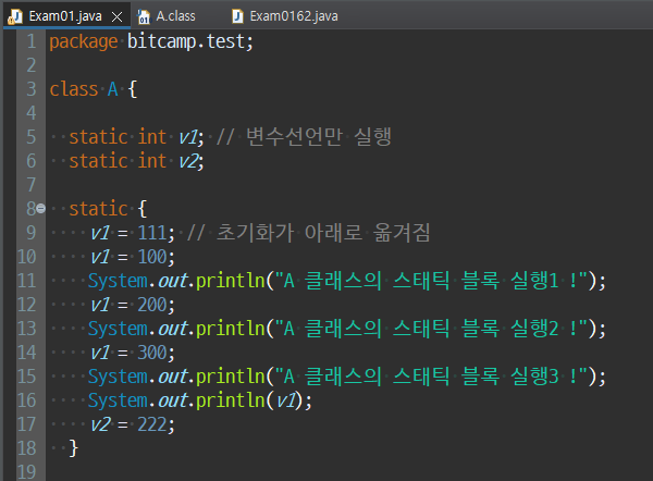 System.out.println("A 클래스의 스태틱 블록 실행3 !");