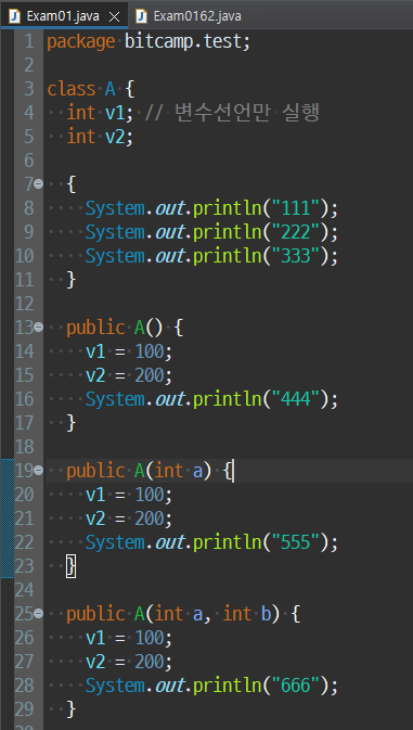 2. 각각의 생성자의 맨 앞으로 변수 선언이 이동한다.
