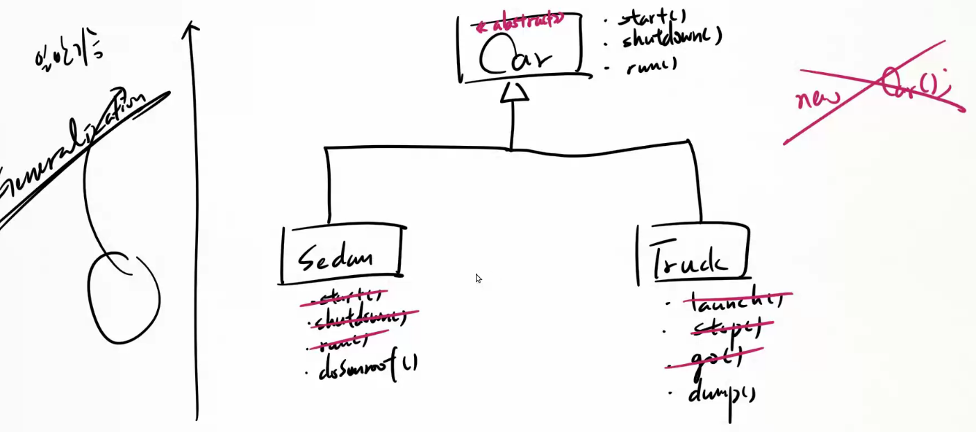 // => 보통 '일반화(generalization)' 과정에서 생성되는 클래스를 추상 클래스로 만든다.