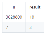 - 10! = 3,628,800입니다. n이 3628800이므로 최대 팩토리얼인 10을 return 합니다.