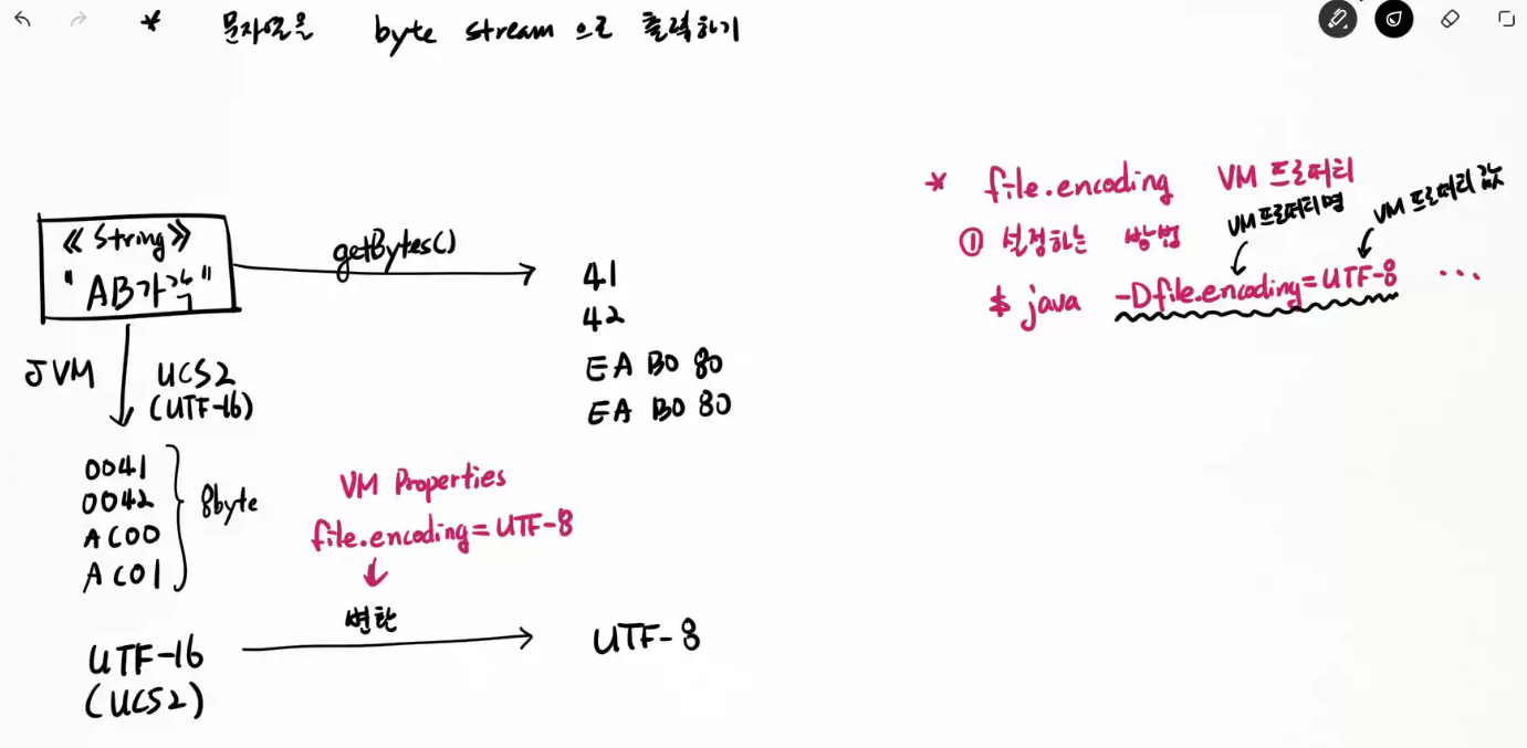 // - JVM을 실행할 때 file.encoding을 설정하지 않으면
