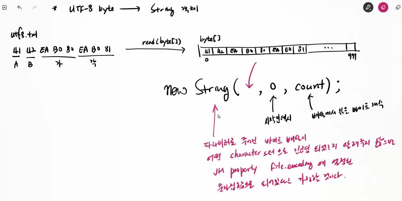 // - 바이트 배열은 UTF-8로 인코딩 되었는데,