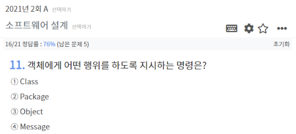 객체에게 어떤 행위를 하도록 지시하는 명령은 메시지이다.