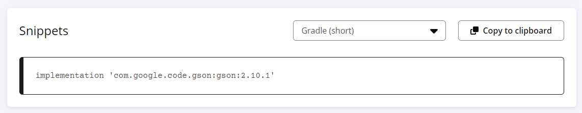 1. 접속하여 최신 버전의 Gson 패키지 implementation을 확인합니다.