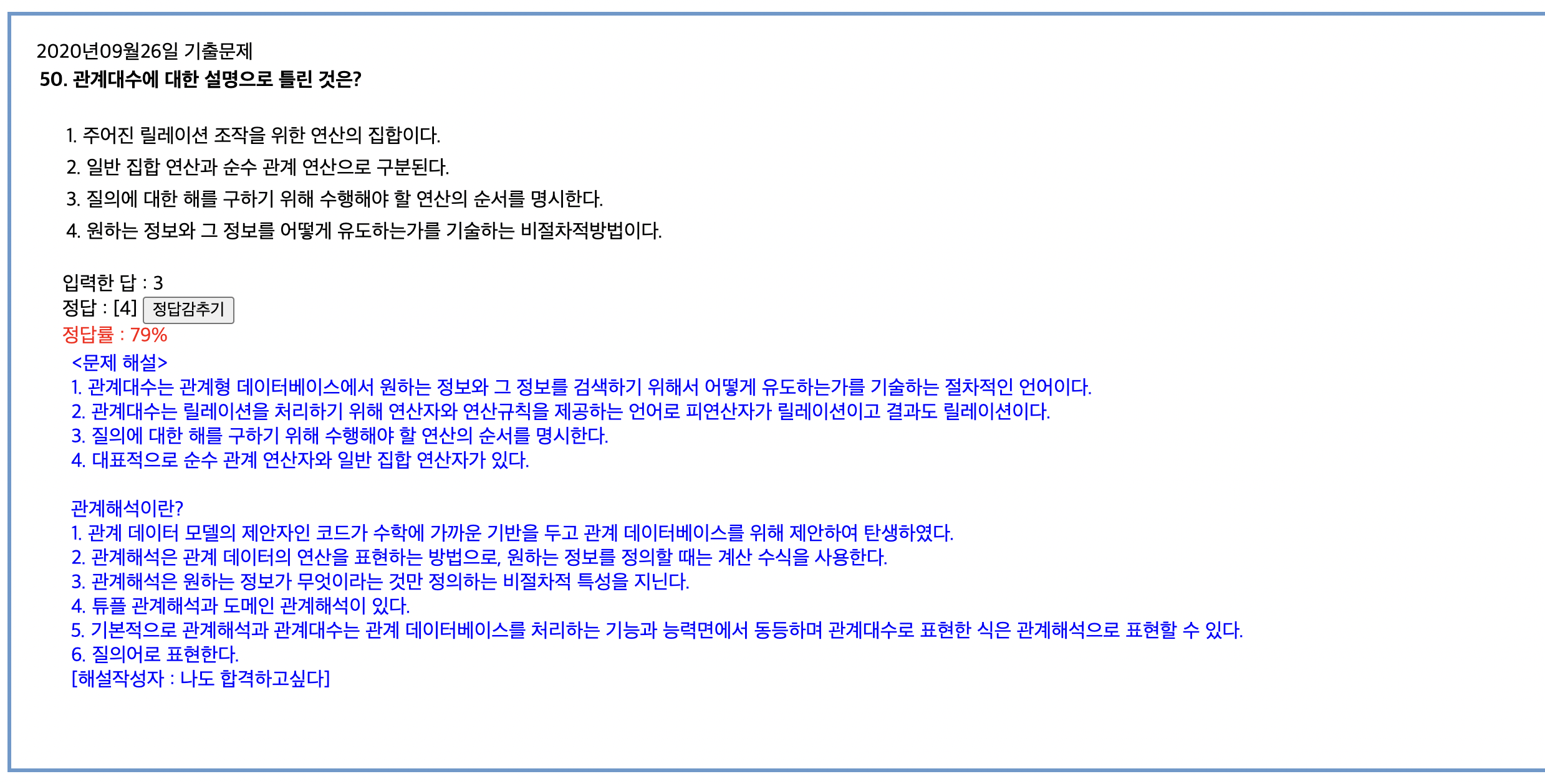 문제위주로 풀어보기 위해서 CBT를 활용합니다.