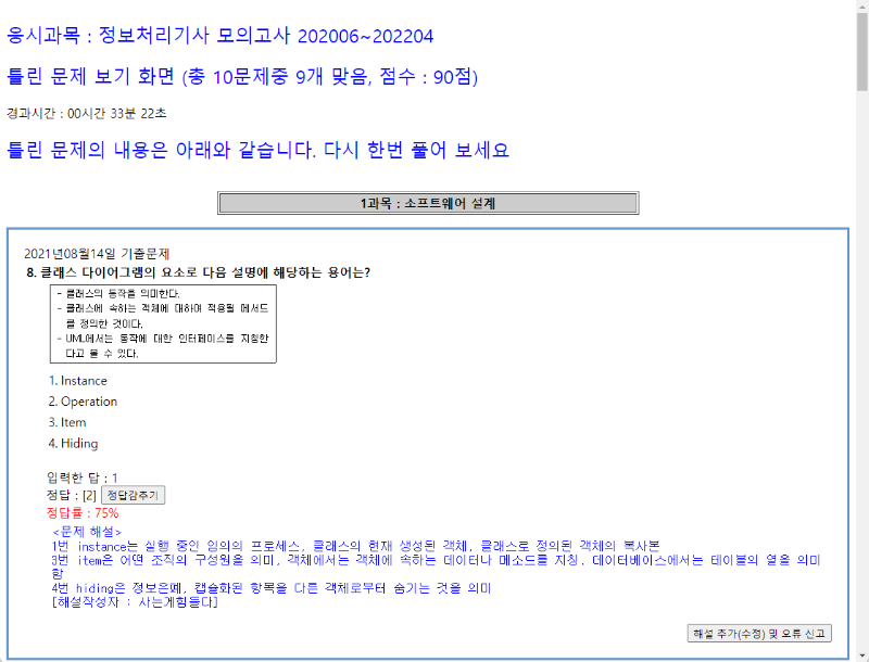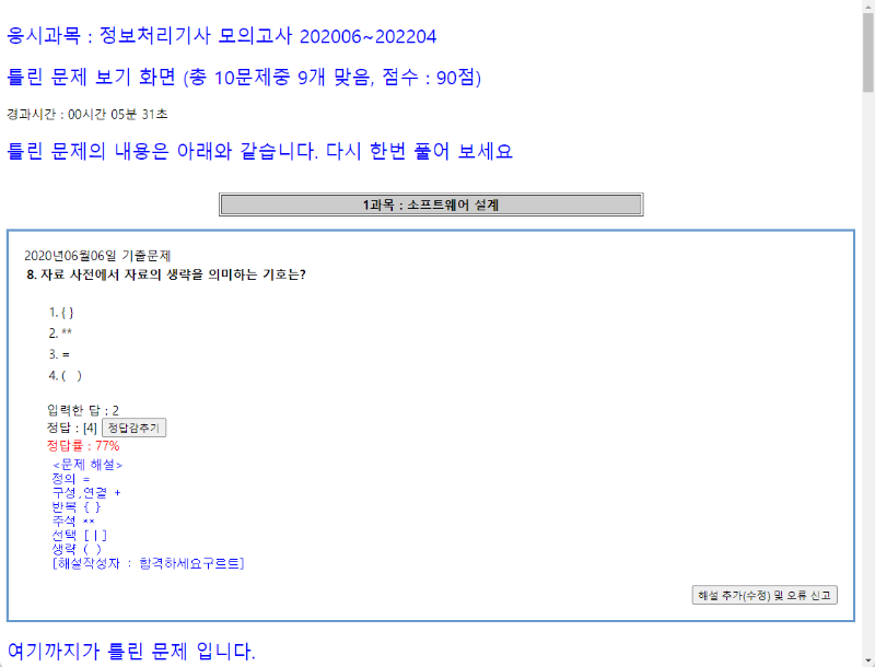정보처리기사 50문제 풀기 14Day (1과목. 50문제) 84점