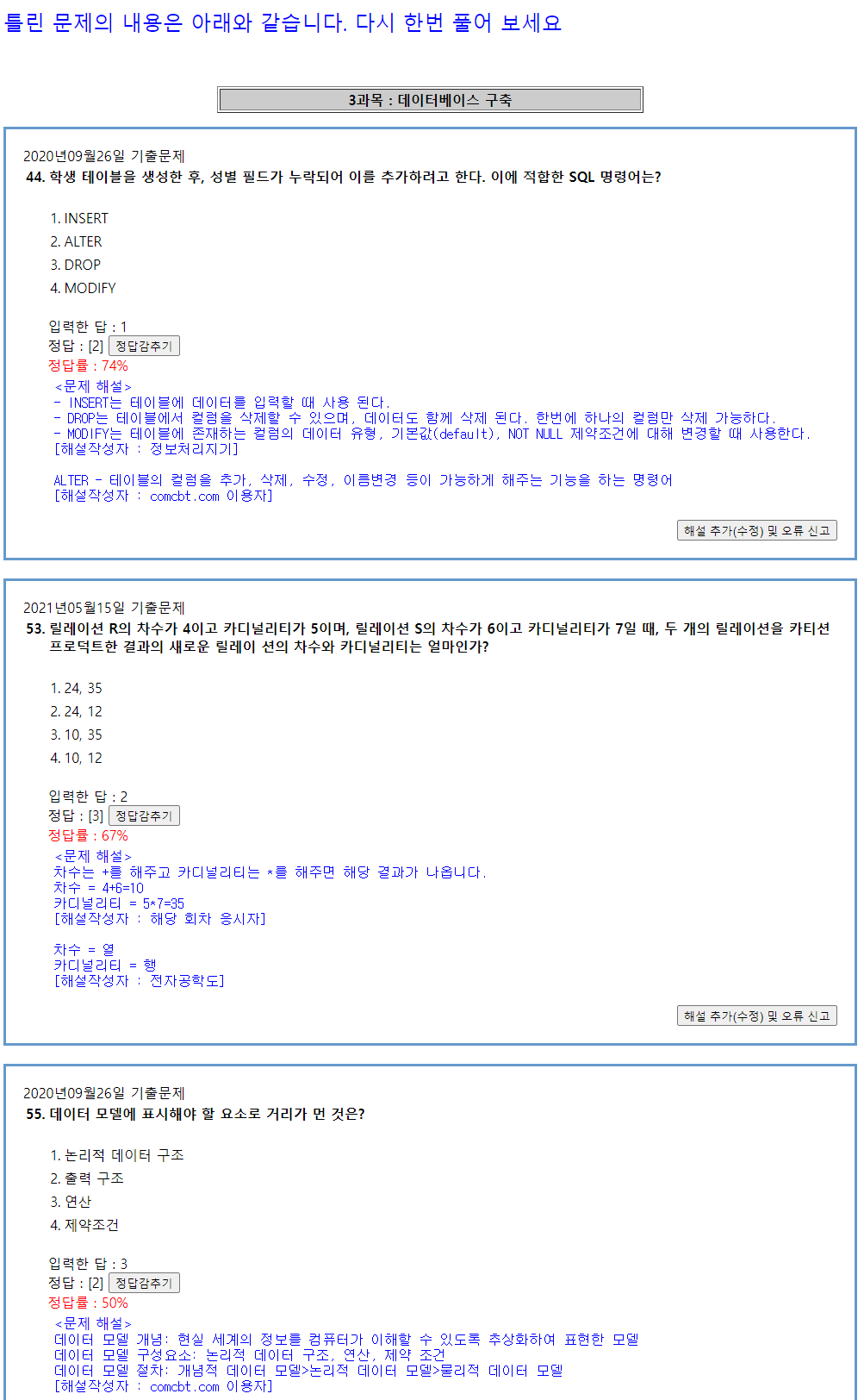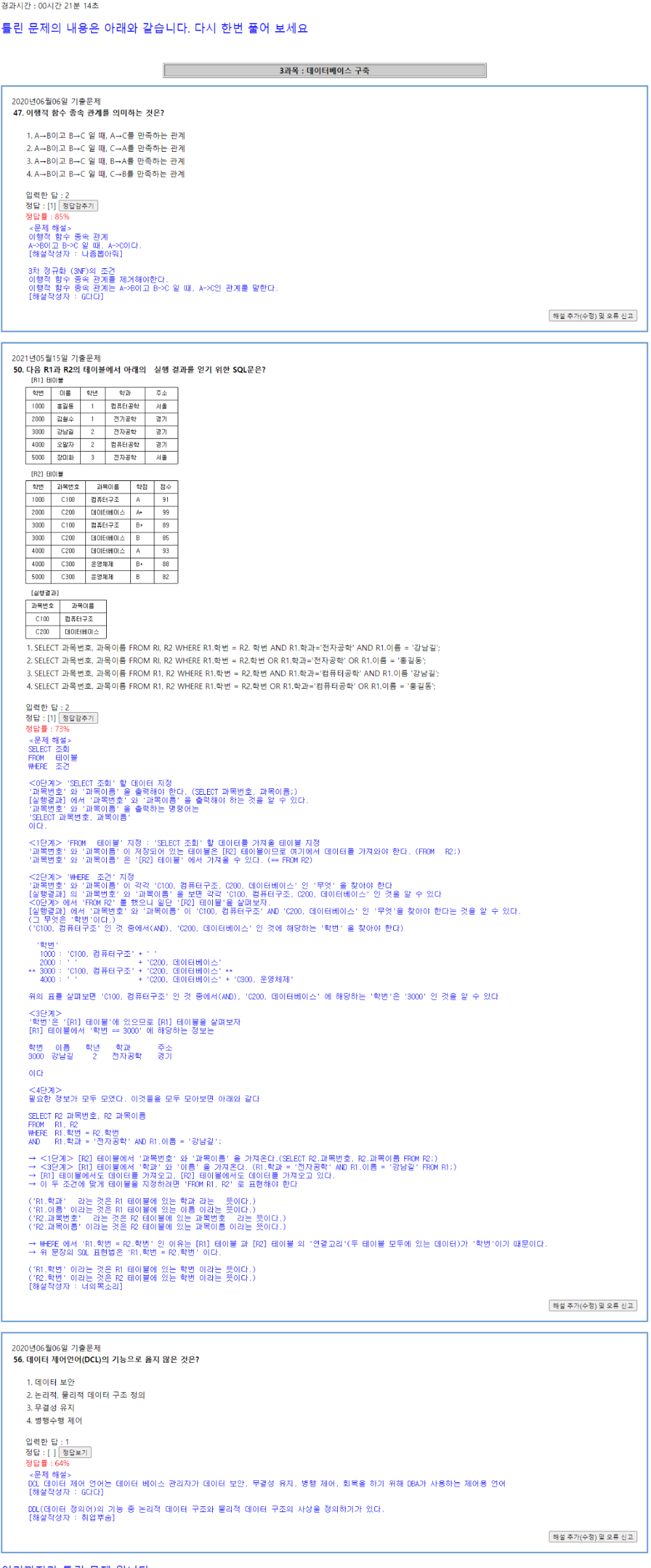 정보처리기사 50문제 풀기 14Day (3과목. 50문제) 84점