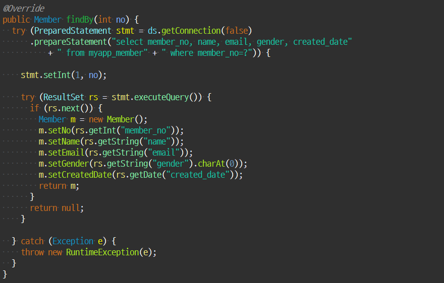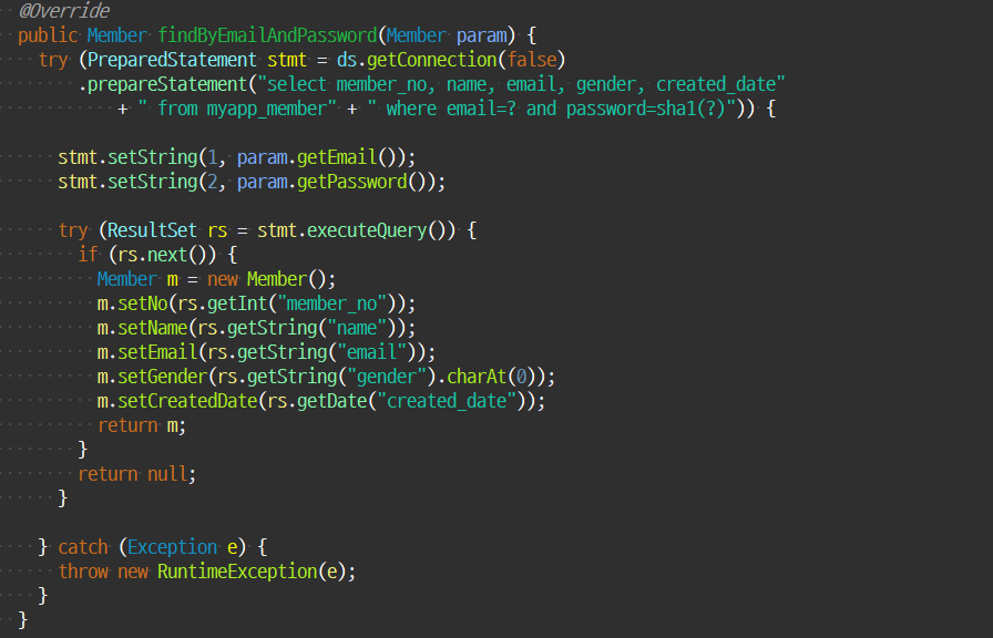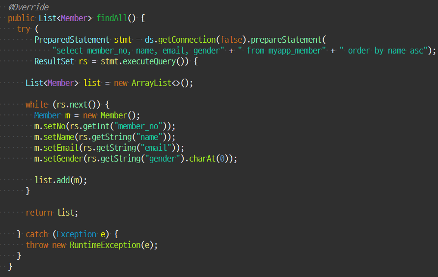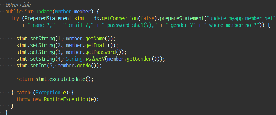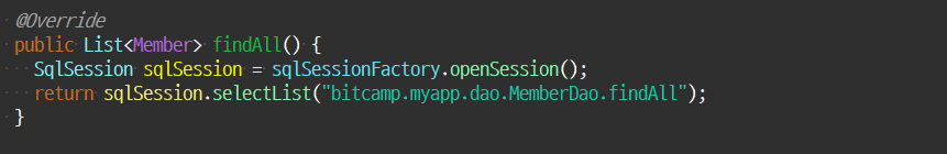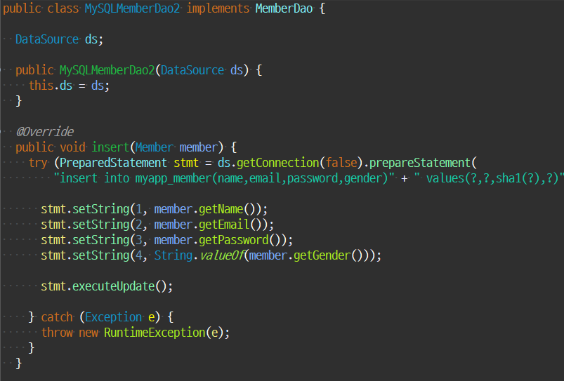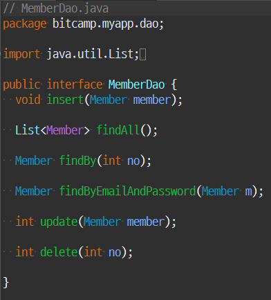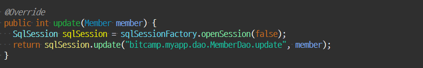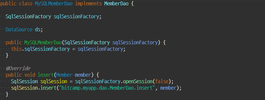 # MySQLMeberDao 또한 mybatis와 연동하여 수정을 해주어야한다.