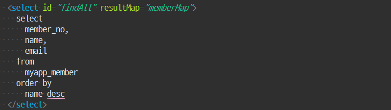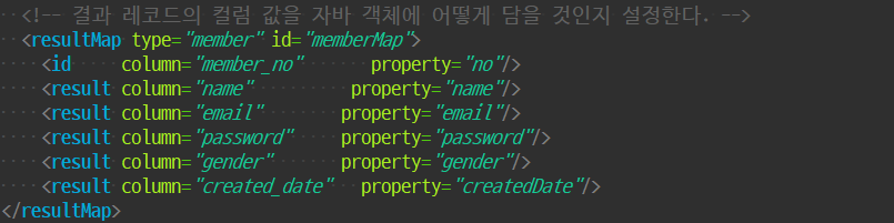 resultMap의 property 명을 참고해서 sql문을 작성해주어야하며