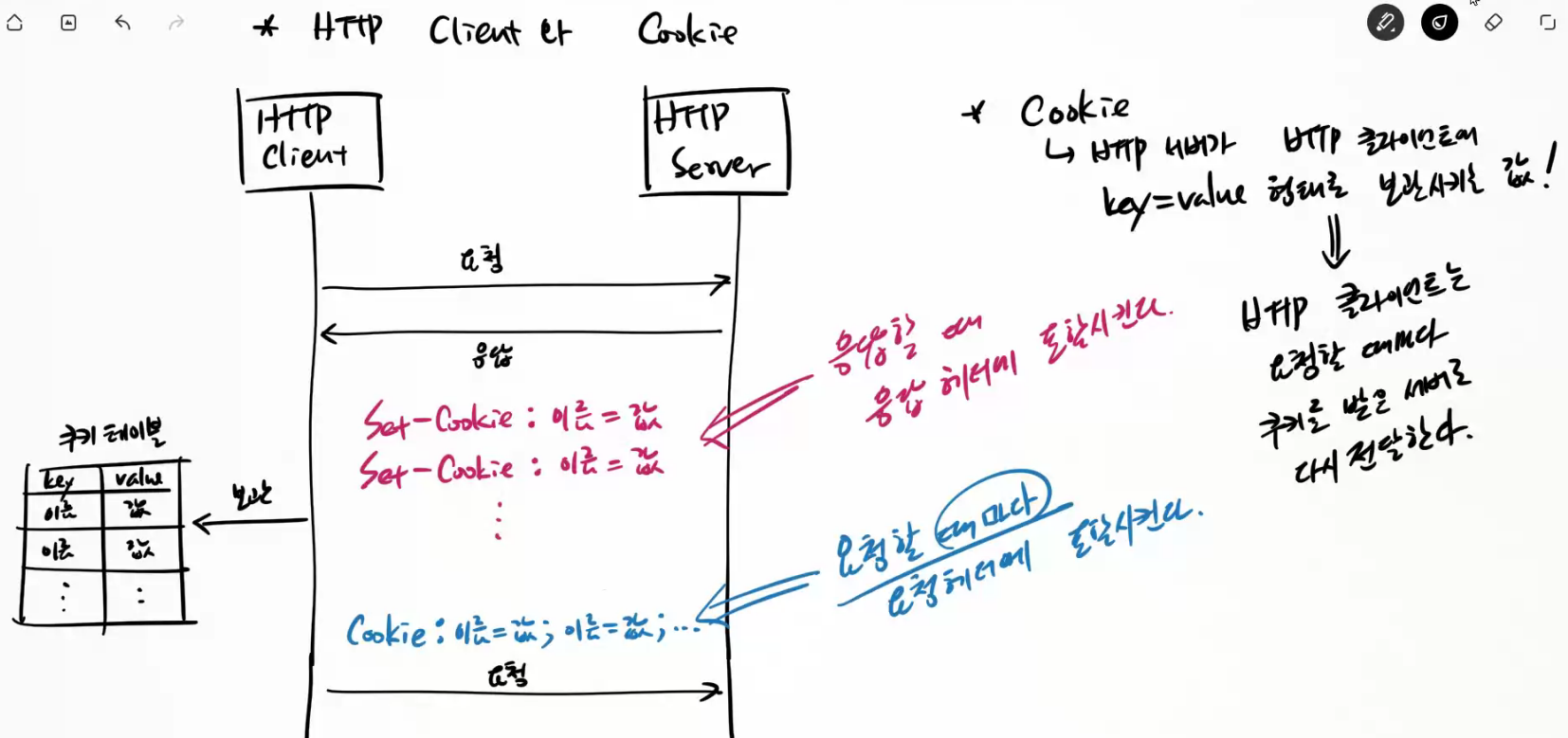 쿠키는 HTTP 프로토콜을 통해 서버에서 클라이언트에게 전달되는 작은 데이터 조각입니다.