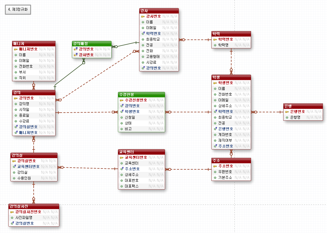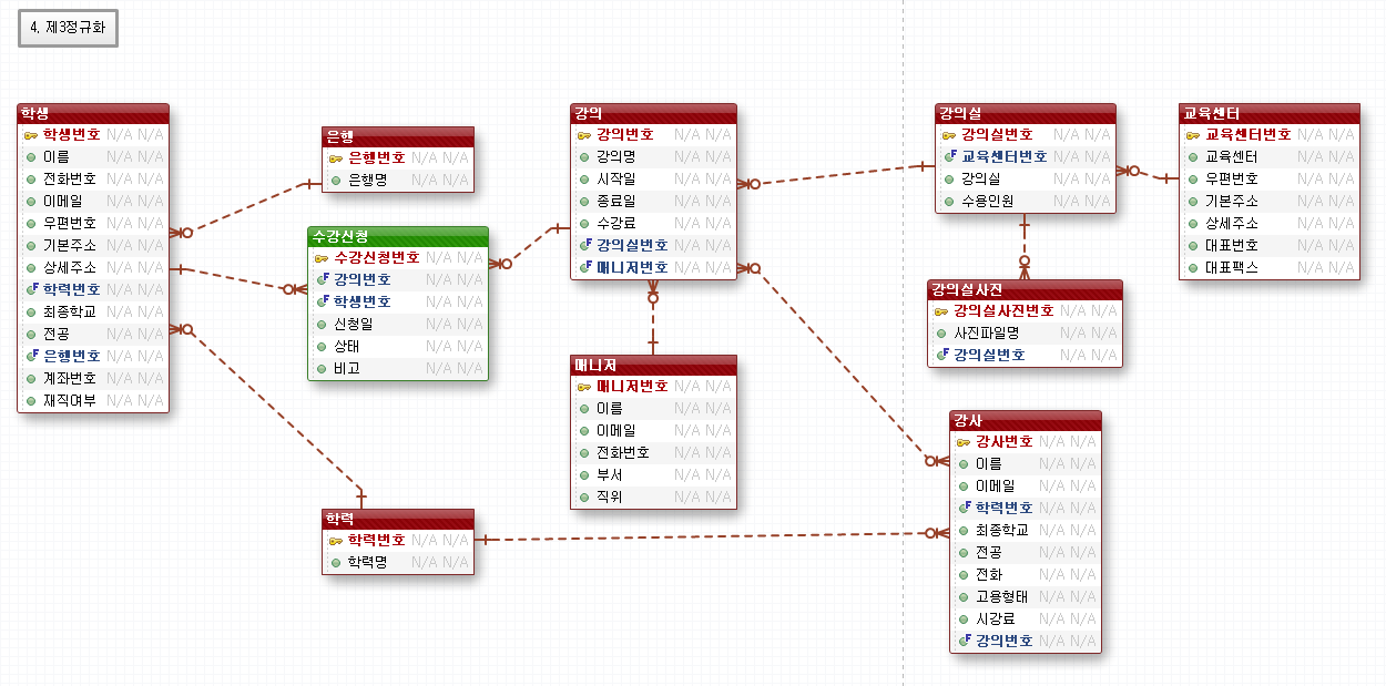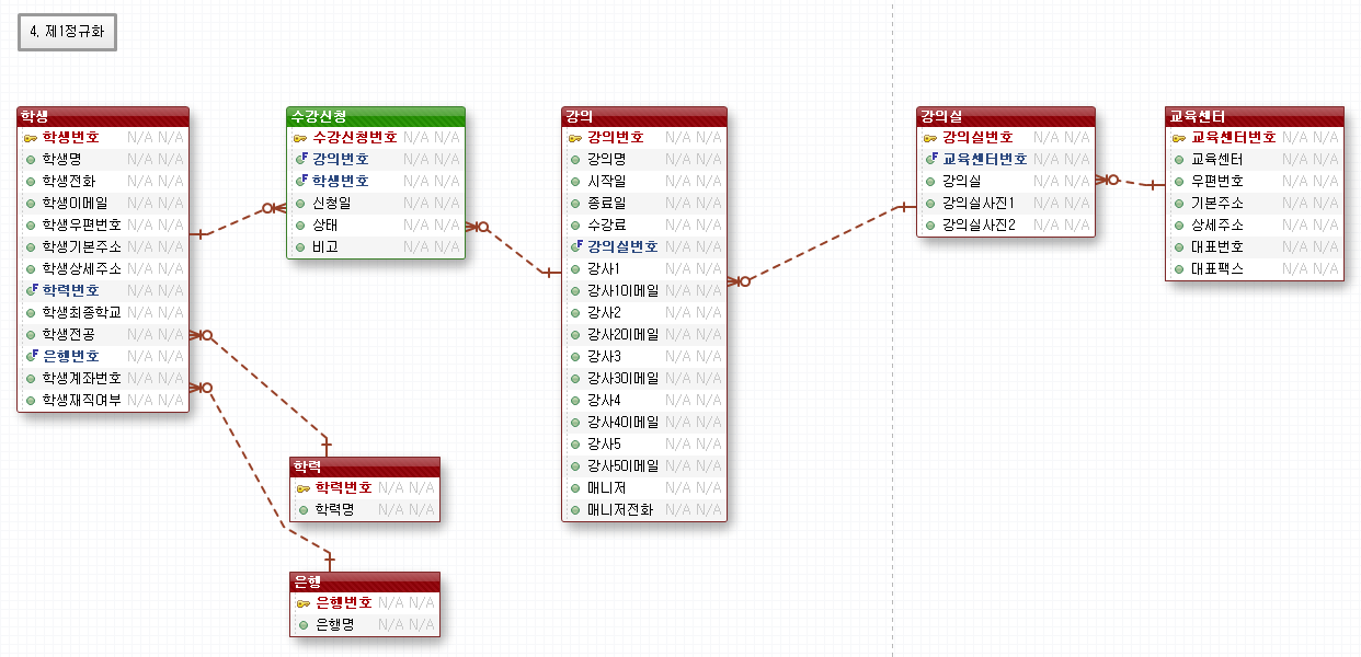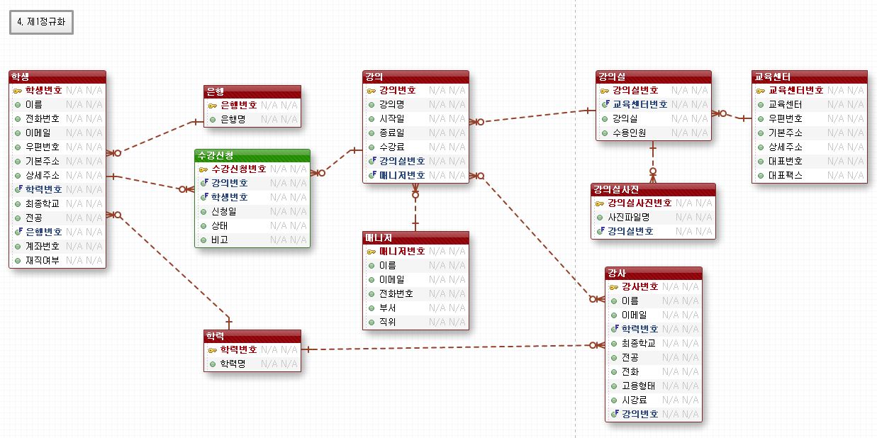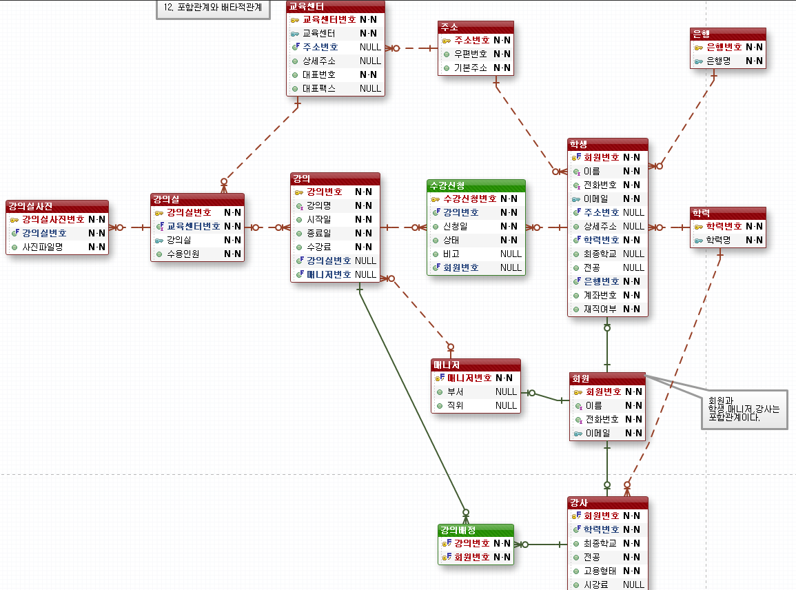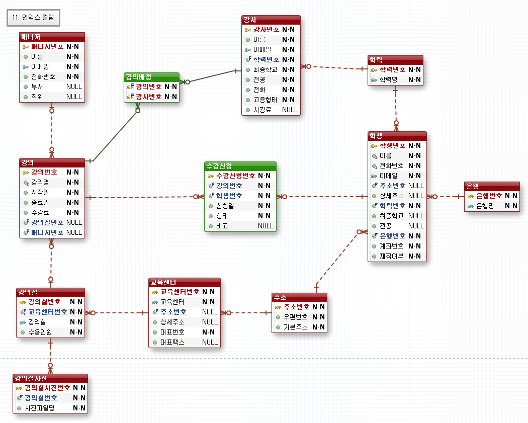 ERD 관계도 & DB모델링 (제1정규화, 제3정규화, 유니크컬럼 지정, null값 허용, 인덱스 컬럼, 포함관계와 배타적 관계 식별)