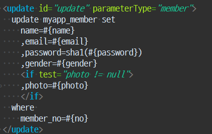 MeberDao.xml 에서 ERD에서 추가한 photo 컬럼을 적용시키기 위해