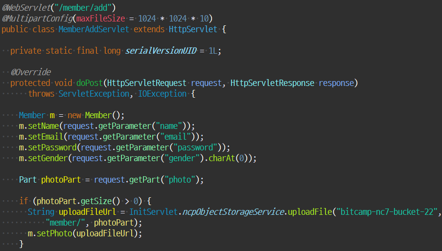업로드 된 사진 정보의 url을 member 객체에 할당한다.
