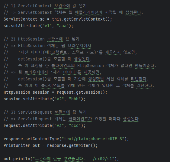 서블릿은 해당 요청과 응답 범위 내에서 데이터를 공유합니다.