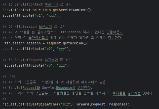 포워드와 인클루드된 서블릿은 같은 요청 범위 내에서 데이터를 공유합니다.