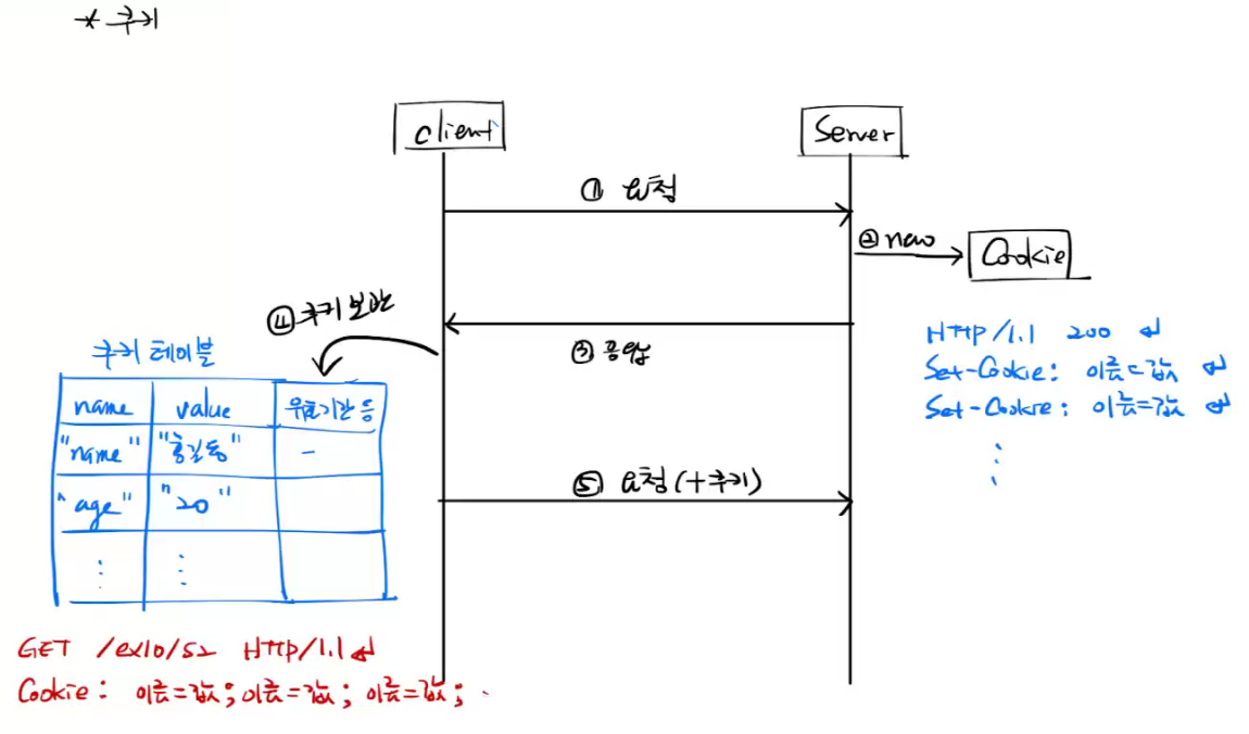 쿠키는 작은 데이터 조각을 클라이언트의 웹 브라우저에 저장하는 방식입니다. 주로 사용자 선호 설정, 사용자 로그인 정보, 장바구니 내용 등을 유지하고 전송할 때 활용됩니다. 쿠키는 클라이언트 측에서 저장되기 때문에, 서버와의 통신이 필요 없이 브라우저에서 사용됩니다.