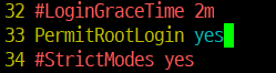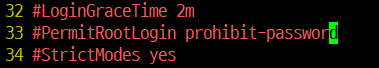 vi 편집기에서 33번 라인에 있는 '#PermitRootLogin prohibit-password' 부분을 PermitRootLogin yes 로 바꿔주면된다. (#은 주석처리 명령어이기 때문에 반드시 지워줄 것 !)