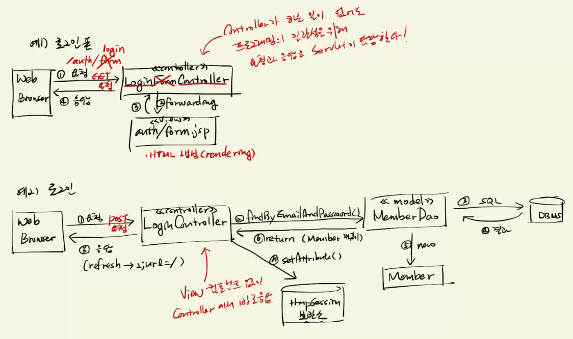 이 구성 요소들은 각각의 역할과 책임을 가지고 협력하여 웹 어플리케이션을 구조화하고 개발하는 데