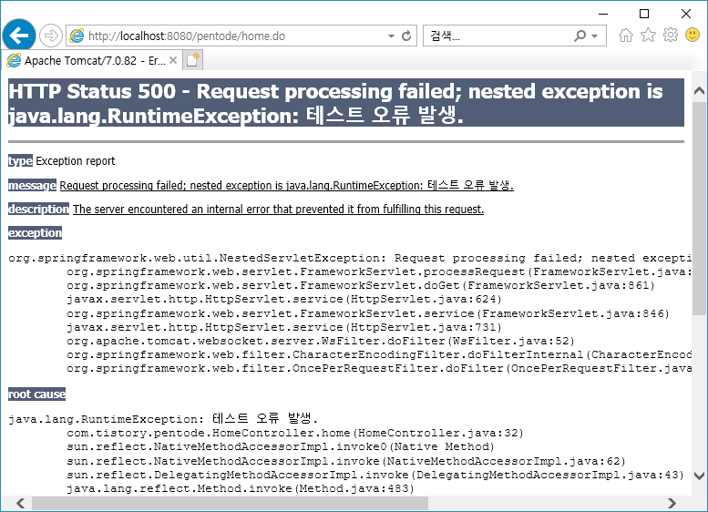 // Request Handler에서 예외를 던졌을 때 처리 절차!