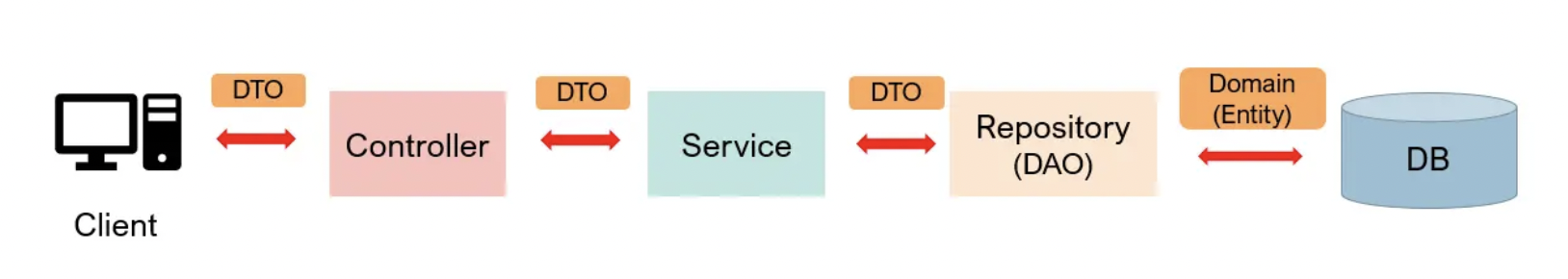 DAO는 데이터베이스 액세스 계층을 나타냅니다. 데이터베이스와의 상호 작용을 처리하고 데이터 액세스 로직을 구현합니다. 이 계층은 데이터베이스와의 통신을 관리하며 SQL 쿼리를 실행하여 데이터를 가져오거나 업데이트합니다. DAO 계층은 데이터베이스와의 인터페이스를 제공하여 데이터의 영속성(지속성)을 보장합니다.