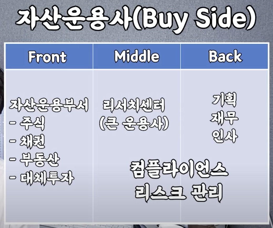 - 퀀트투자는 프론트 오피스 직무로 분류되며, 자산운용사의 수익 창출을 직접적으로 돕는 핵심적인 역할을 수행합니다.