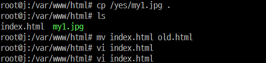 mv index.html old.html: index.html 파일을 old.html로 이름 변경합니다.