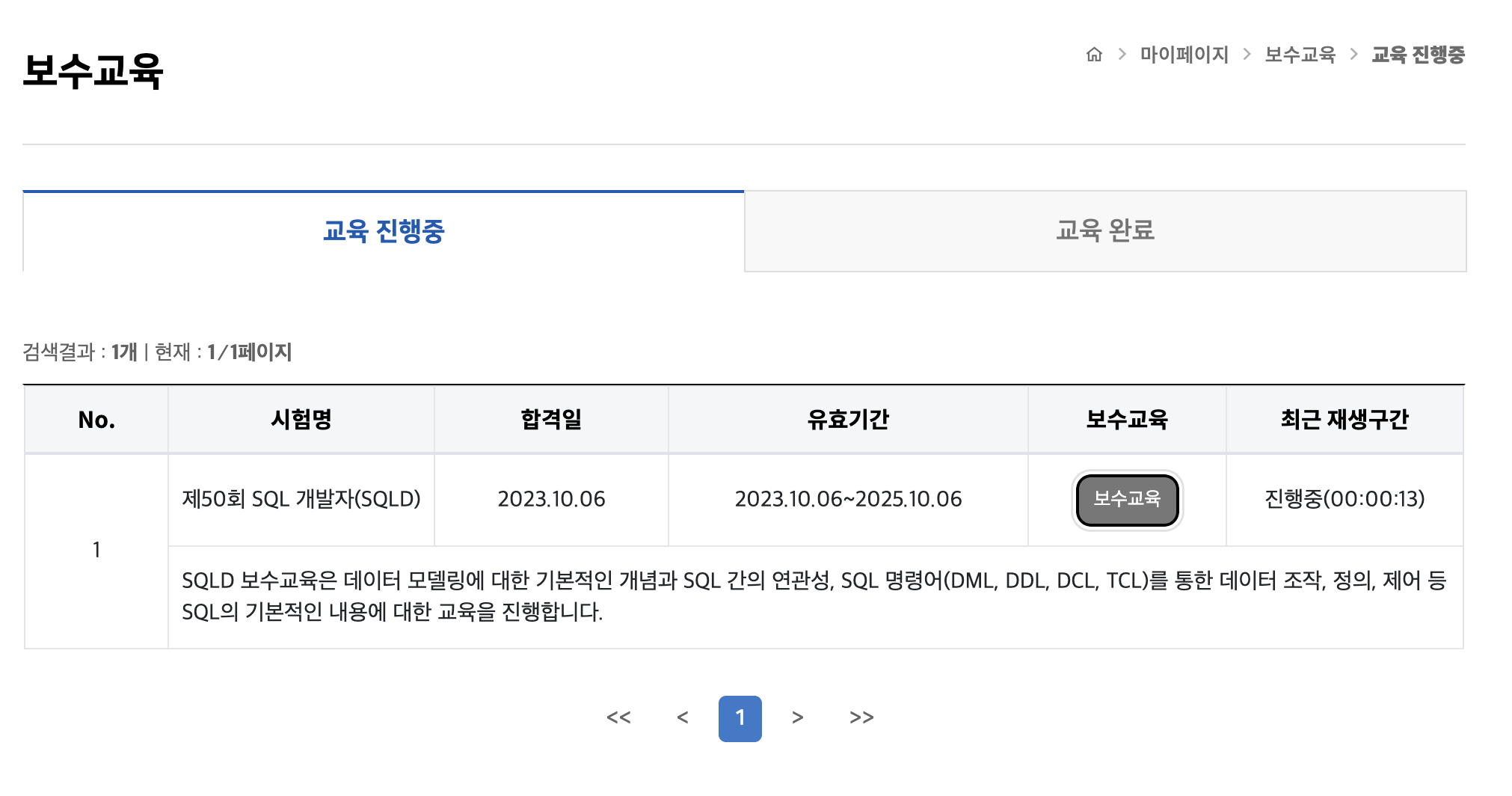 오늘 데이터산업진흥원으로부터 SQL 보수교육을 받으라는 카톡을 받았습니다