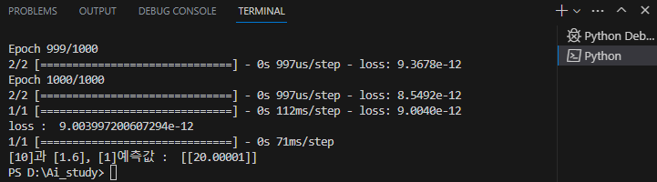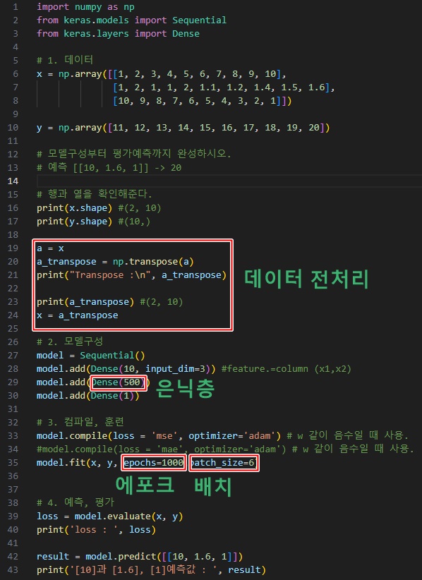 파이썬 딥러닝 기본 코드 실습 (numpy, keras, adam)