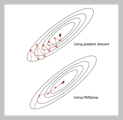 ■ 보완점 RMSProp의 주요 특징은 최신 기울기에 큰 가중치를 부여하여 중요한 정보를 보다 강조한다는 것. 이를 통해 기울기의 크기에 따라 학습률이 적절하게 조정되어 전역 최솟값을 효과적으로 탐색.