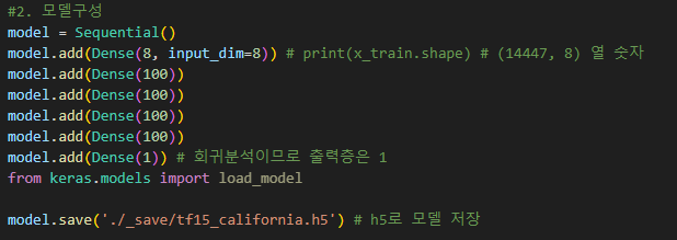 model.add(Dense(8, input_dim=8)) # print(x_train.shape) # (14447, 8) 열 숫자