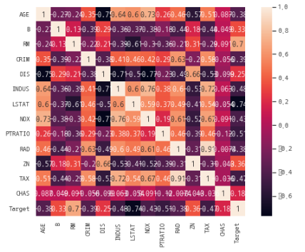 x = datasets[['AGE', 'B', 'RM', 'CRIM', 'DIS', 'INDUS', 'LSTAT', 'NOX', 'PTRATIO',