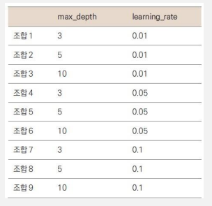 각 조합에 대해 모두 모델링해보고 최적의 결과가 나오는 하이퍼파라미터 조합을 확인