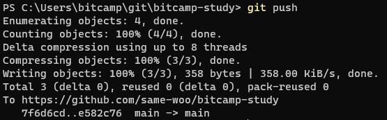 git push 명령어를 통해서 로컬 저장소의 커밋들을 원격 저장소로 업로드