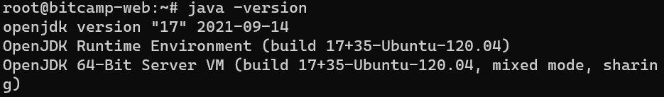 설치가 완료되면 다음 명령을 사용하여 Java 버전을 확인해준다.