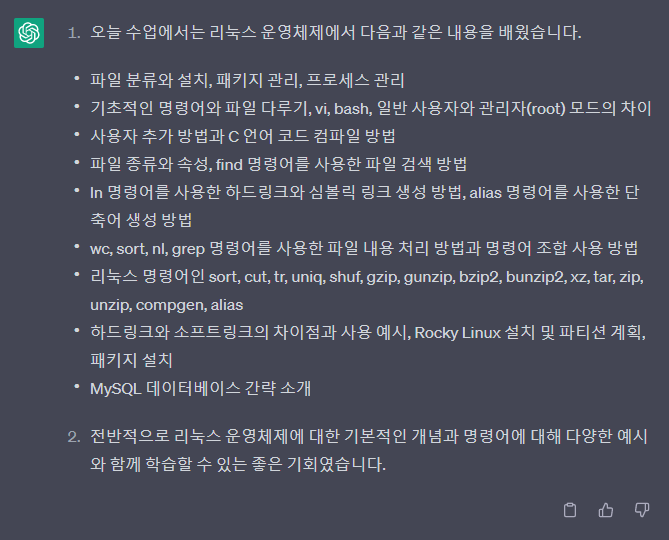오늘 수업에서는 파일 분류, 패키지, 프로세스 관리 및 다양한 명령어를 배웠다.