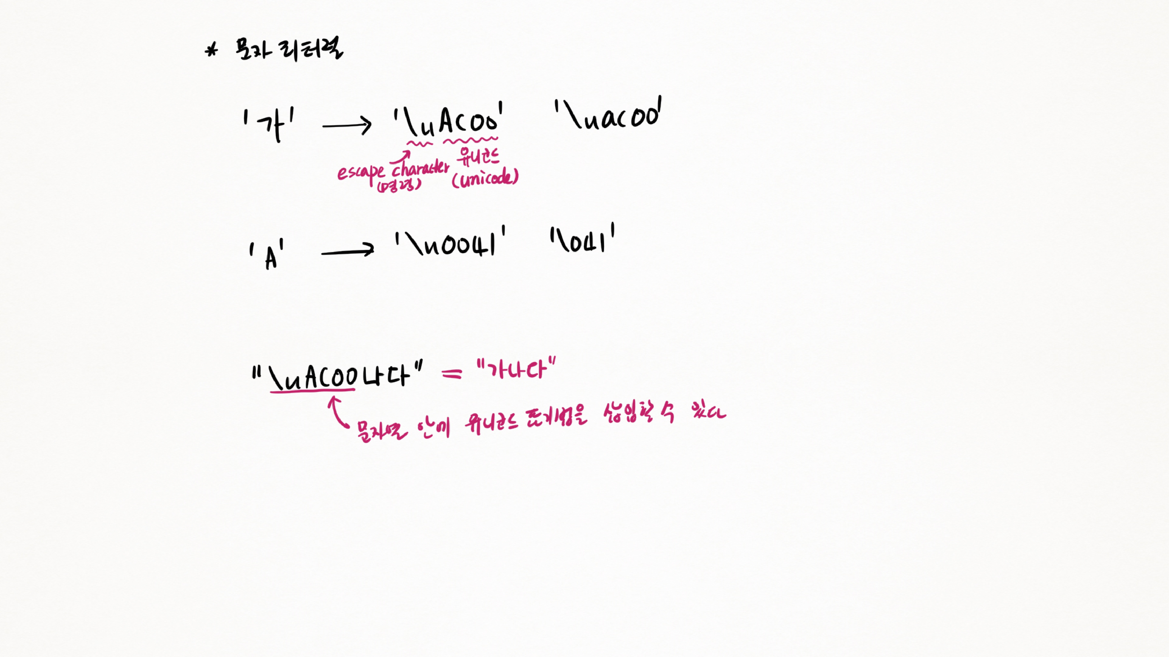 문자열 안에 유니코드 표기법을 삽입할 수 있다.